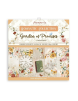 Pochette de 10 feuilles de scrapbooking 30,5cm x 30,5cm recto verso Stamperia jardins et promesses. papiers avec de belles impressions de fleurs, de calligraphie et d'horloges anciennes, tout cela avec des fonds clairs